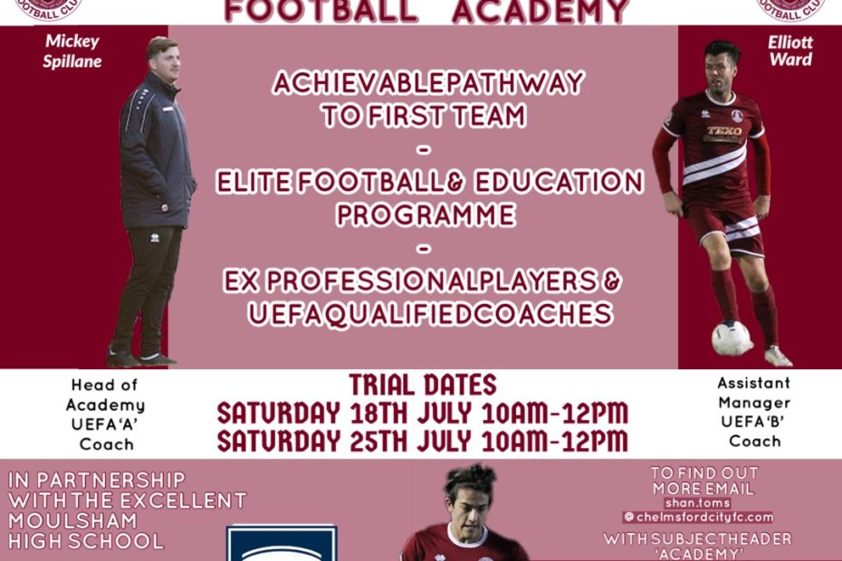 CHELMSFORD CITY FOOTBALL ACADEMY -In partnership with Moulsham High School A Levels & BTEC courses -Achievable pathway to First Team -Elite Football & Education Programme… Read More »CHELMSFORD CITY FOOTBALL ACADEMY